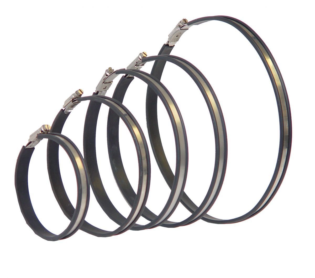 Metalsub stainless steel hose clips with protective EPDM rubber.
